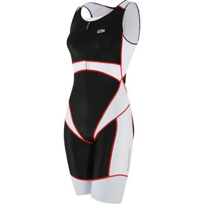 FABRICS: Tritek Carbon-X Mesh DETAILS: Next-to-skin fit Front 15"/38 zip 2 side angle pockets with flap Flatlock seams Comfort-designed armholes and neck Carbon-X Mesh inner bra Powerband Front, back, and bottom reflective logos Women Tri Air Chamois SPF/UPF 50 Wind tunnel tested Inseam 9.75"/24.75 cm